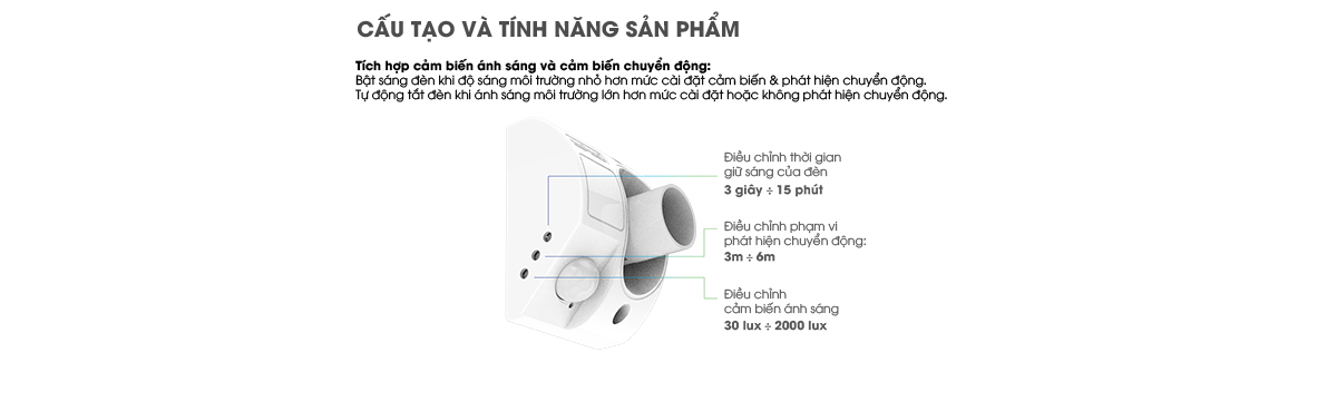 Điều chỉnh phạm vi hoạt động cảm biến, mức cảm biến ánh sáng, thời gian giữ sáng cho đèn kể từ khi không phát hiện chuyển động